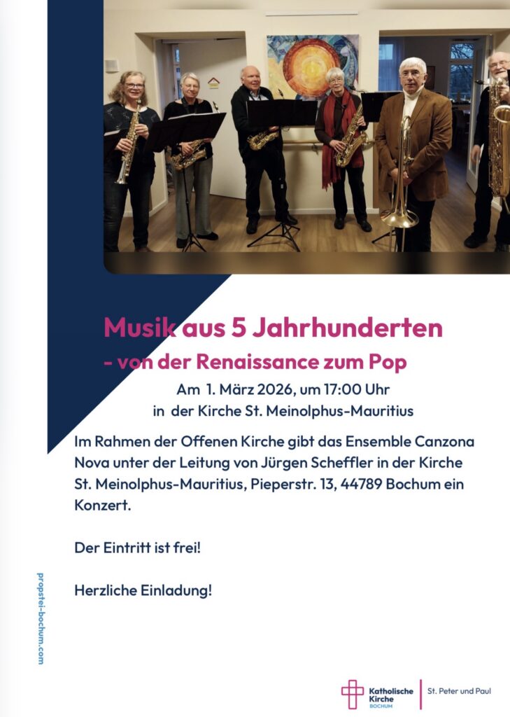 Am 1. März 2026, um 17:00 Uhr in der Kirche St. Meinolphus Mauritius mit dem Ensemble Canzona Nova unter der Leitung von Jürgen Scheffler.